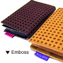 ■エンボスシリーズ・ディンプル ピッグスキンにエンボス(型押し)加工をすることで表面に凹凸を加えました。押した部分の色が濃く変化し、多様な表情が楽しめます。植物タンニン鞣しで作られたピッグスキンを使用。人に、環境に、優しい素材です。各商品はキャメルとチョコの2色があります。