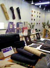 通路前ディスプレイ台あたりです。システム手帳やキーケース等を手に取っていただきピッグスキンの手触りを感じてもらいました。