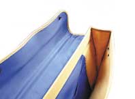 ふた(かぶせ)部分が皮革です。ホック式。ベルトで巻くことによりコンパクトにまとめることができます。内側にミニポケットがついています