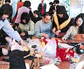 ■ポシェットやコースターを創って遊ぶ体験コーナー。他にもアニマルストラップや小物入れなど、教えてもらいながら簡単につくれます。
