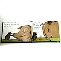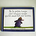 フランス語の絵本ですが内容は簡単。モグラのあたまにうん○が落ちてきたので怒ったモグラが頭にうん○を乗せたまま犯人探しの旅にでかける、