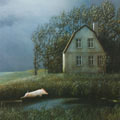 ドイツの画家、ミヒャエル・ゾーヴァの豚。絵本の挿し絵やポストカード、カレンダーでおなじみ。想像をかき立てられる不思議な世界。