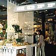 商品企画から輸入まで手広い。一つ一つを取れば珍しい物ではないのにこれだけの量を一同に並べられると何かいいものがありそうな気がするのはおかしい。ここ数年良く見られるすけるような生地を扱ってさまざまにアレンジされたカーテンや食べ物を虫から守るネットもかわいくすればなるものなんだと感心させられたり。グリーンがベースのコーナー。睡蓮の造花やはなをかたどったローソク大きな緑の鉢もローで出来ている中に水を張ってローソクを浮かすと器が少し透ける。その横の緑の粒は緑色の木の実の模造品で出来たクランツ。これをベースにほかの物をあしらったりリボンでアクセントをつけたりしてドアに飾ったりする。