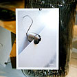 この会社の社長もデザイナー。自身の作品と幾人かの作家の作品を扱っている。 ミニマルな方向性の強いものが多くその中でもとりわけ小さい金属製の写真立てやカードクリップなどが目を引いた。写真でわかるだろうかばねのような形の針金をぐるぐるに巻いた部分にカードを挟む一方に引っ掛けるためのフックが出ていて好きなところに掛けられる。商品名:hook