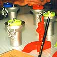 は洗面所の排水口の金具を転用した石鹸置きや灰皿もなかなかユニーク。(写真中央)ネーミングがユニークでザ・グッドは(ゴッドをしゃれている?)ドアストッパー。修道士 風のひげのおじいさん(この人の名はオットー)がドアを支え止めている姿がいい。(写真右)